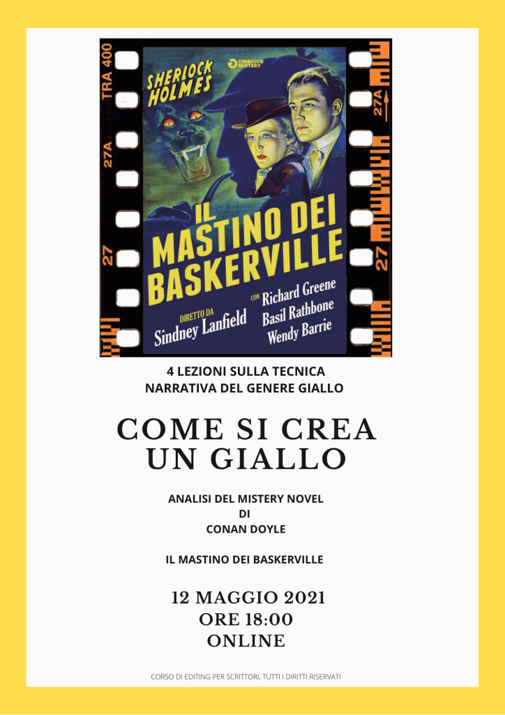 Siete pronti per un nuovo corso? Stavolta parleremo della tecnica narrativa che presiede alla costruzione di una storia di genere giallo. Lo faremo aiutandoci con un autore di genio, Arthur Conan Doyle, il creatore del detective più famoso della storia del giallo: Sherlock Holmes. Il mastino dei Baskerville è un mistery novel del 1901 inizialmente pubblicato a puntante sulla rivista The Strand Magazine, e ha avuto diverse trasposizioni cinematografiche.
